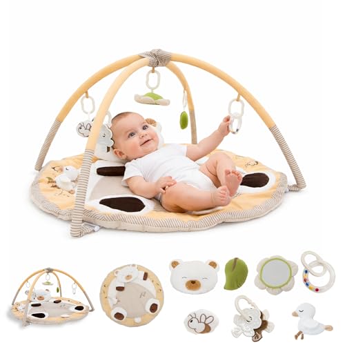 KandyToys Play Project Baby Play Gym Activity Playmat For Newborns, Babies and Toddlers | Friendly Bear Design | Quick Assembly | Includes Teether, Rattle, Mirror and More!