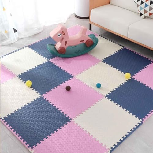 24 Pieces Puzzle Play Mats, Soft Baby Play Mat, Interlocking Foam Floor Tiles for Home Gym, Workout Room, Playroom or Daycare Flooring Pad(White/pink/navy blue)