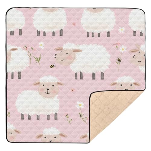 SyXIOP Cartoon Cute White Sheep Soft Padded Baby Playmat for Floor Portable foldable Activity Gym Mat for Babies Infants Toddlers, 50'' x 50''