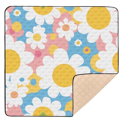 SyXIOP Fluorescent Green Daisy Graffiti Large Sturdy Baby Playmat for Floor Washable foldable Tummy Time Activity Mat for Baby Kids Toddlers Infants, 50'' x 50''
