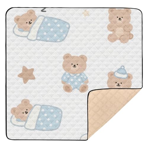 SyXIOP Cartoon Cute Brown Teddy Bear Cute Baby Playmat for Floor Waterproof foldable Activity Gym Mat for Newborns Babies Infants Toddlers, 50'' x 50''