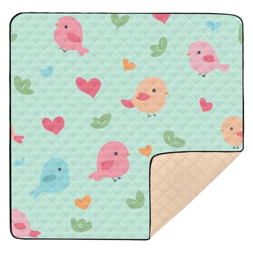 SyXIOP Happy Valentine Cartoon Cartoon Bird Green Soft Thick Baby Playmat for Floor Lightweight foldable Newborns Kicking Mat for Baby Toddler Infant, 50'' x 50''