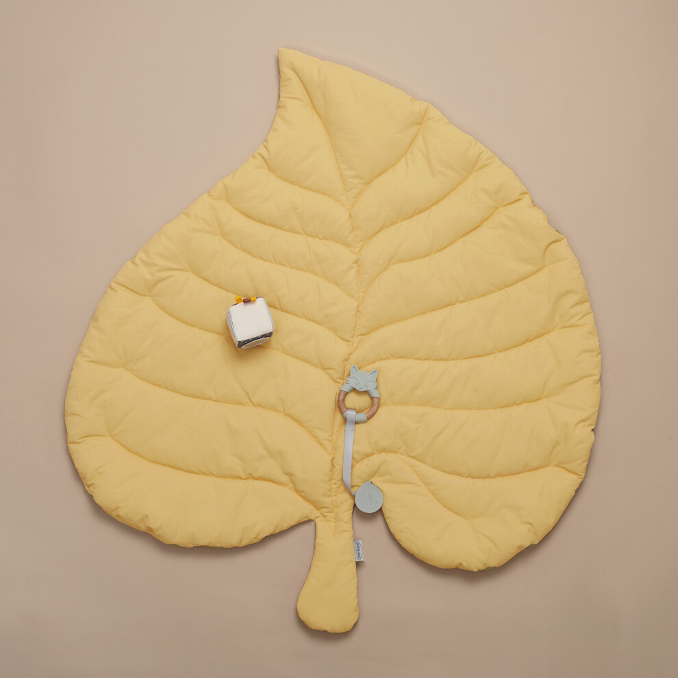 Baby Luxury Cotton Playmat with Activity Cube Toy and Teether - Leaf Yellow