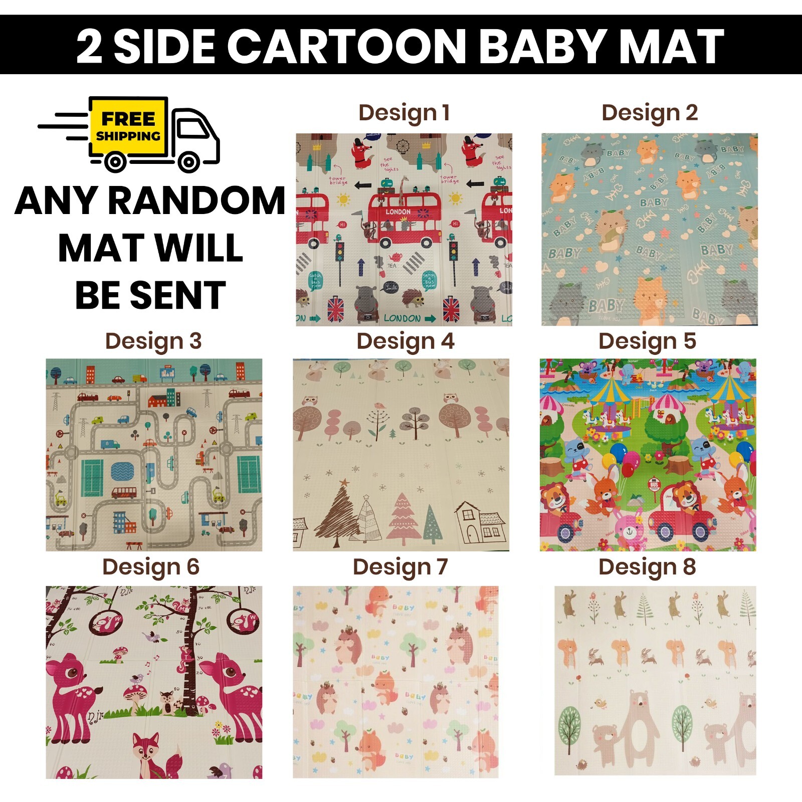 (1 White-200CM*180CM) Cartoon Game Playmat Baby Play Mat 0.5cm Thick Foldable Crawling Mat Double Surface Baby Carpet Rug Developing Mat for Children