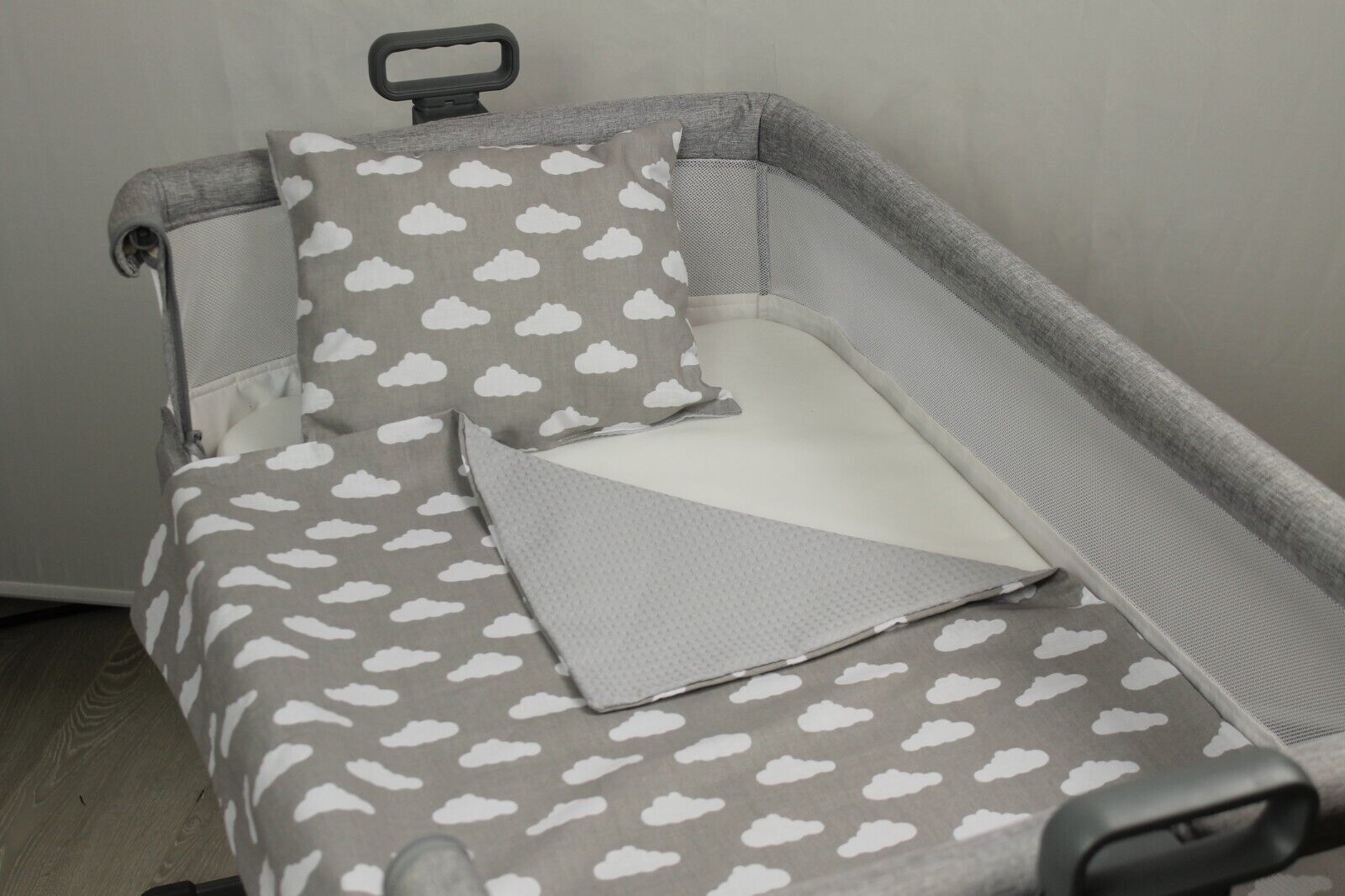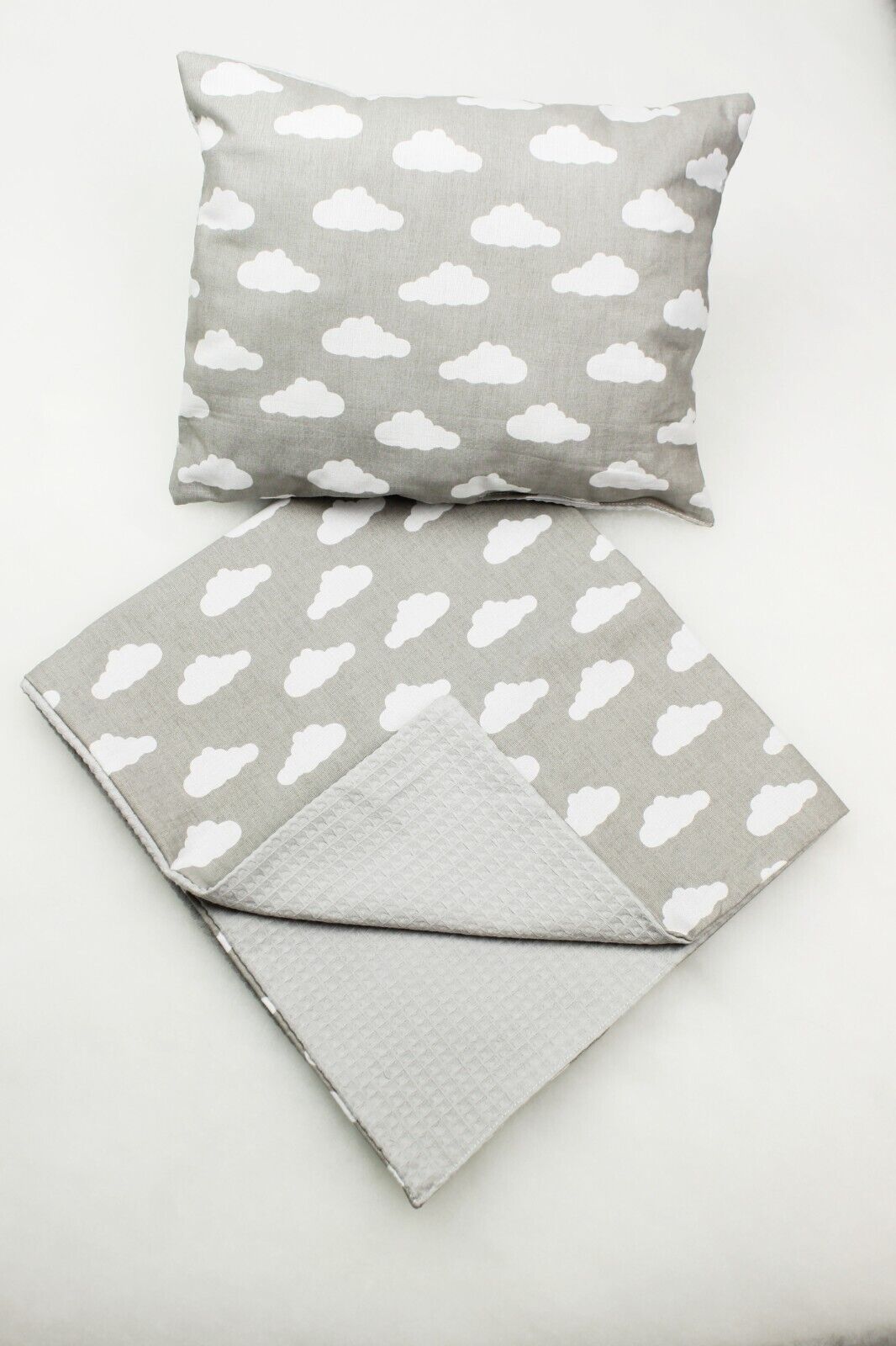 2pc baby blanket set for bedside crib pram cradle GREY CLOUDS waffle cotton