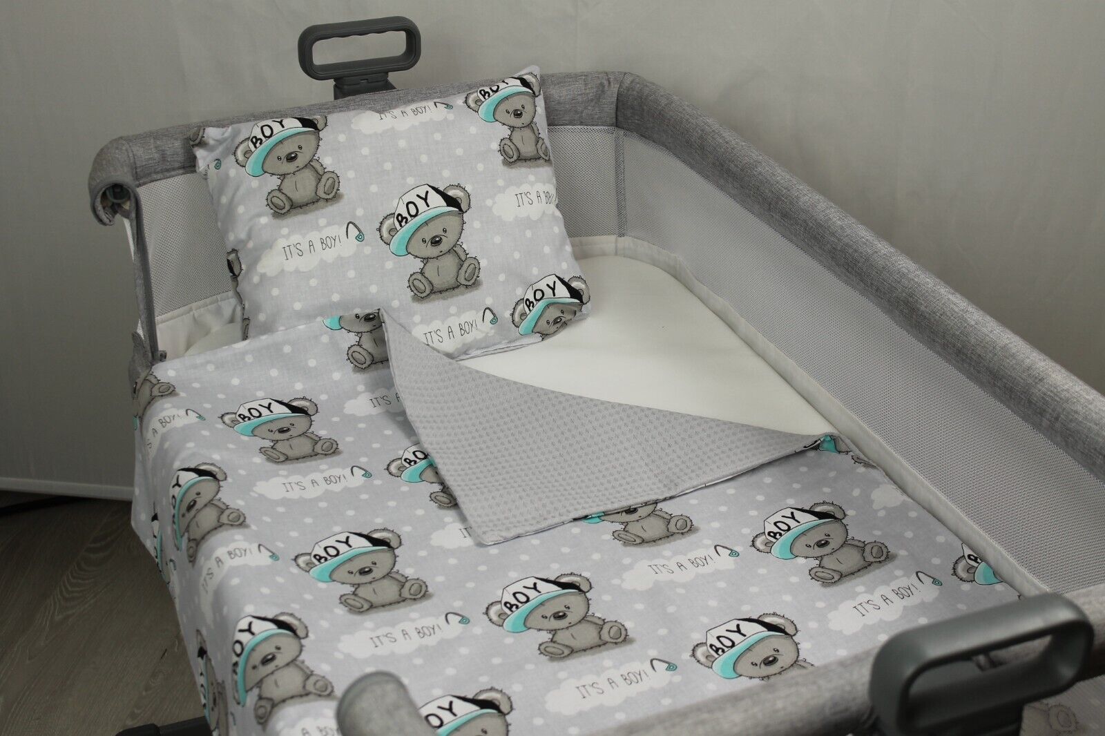 2pc baby blanket set for bedside crib pram cradle GREY BOY TEDDY waffle cotton