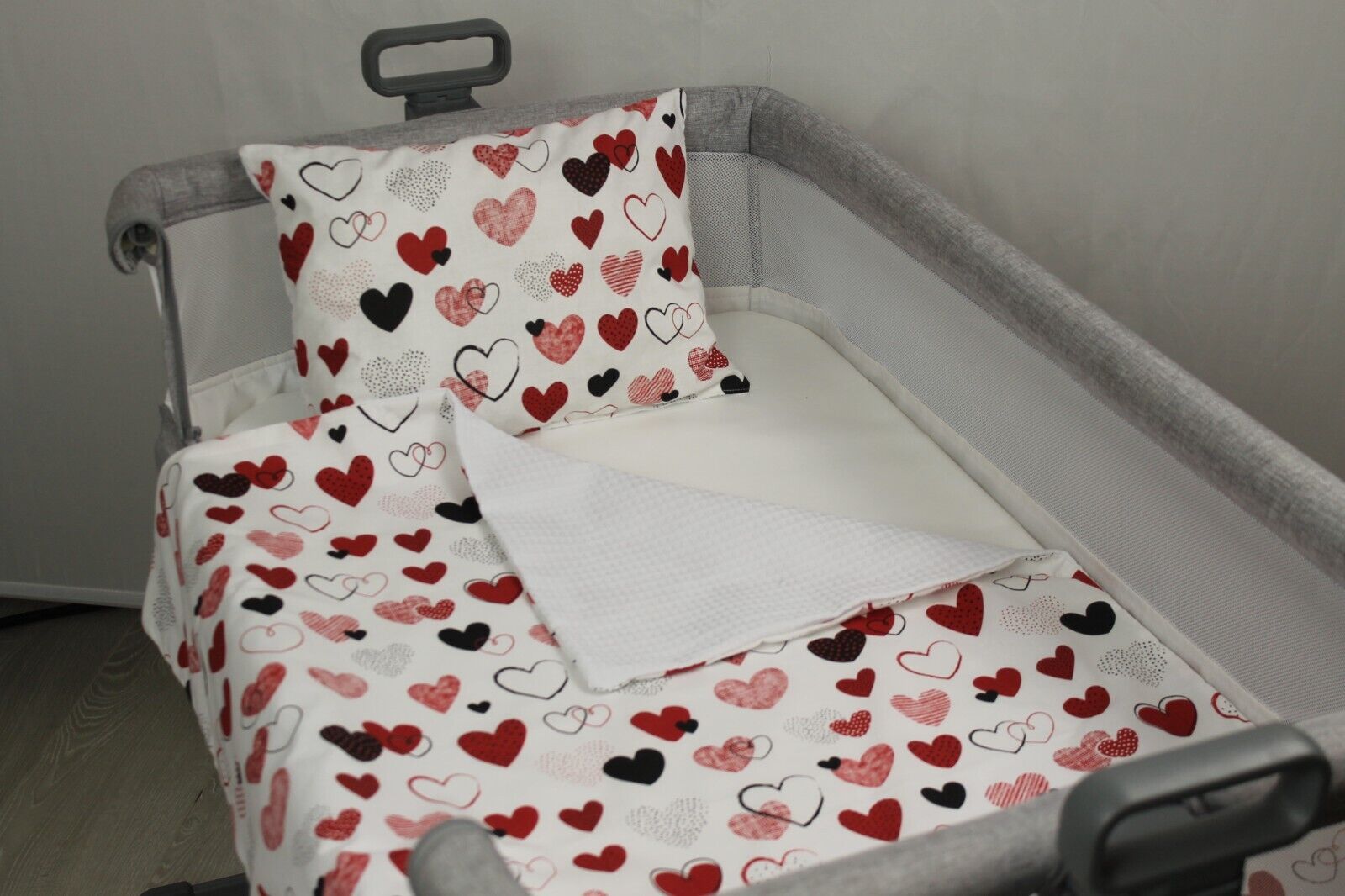 2pc baby blanket set for bedside crib pram cradle LOVE RED HEARTS waffle cotton