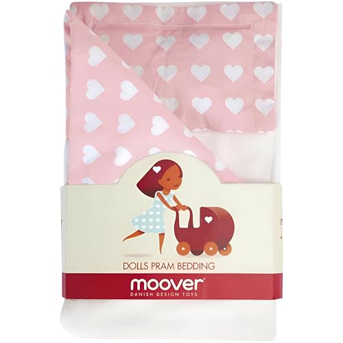 Moover Classic Doll's Pram Bedding Set, Pretend Play/Role Play, Includes Mattress, Sheet, Pillow and Blanket, 4-Piece Set, 18 Months+, Baby Pink Hearts