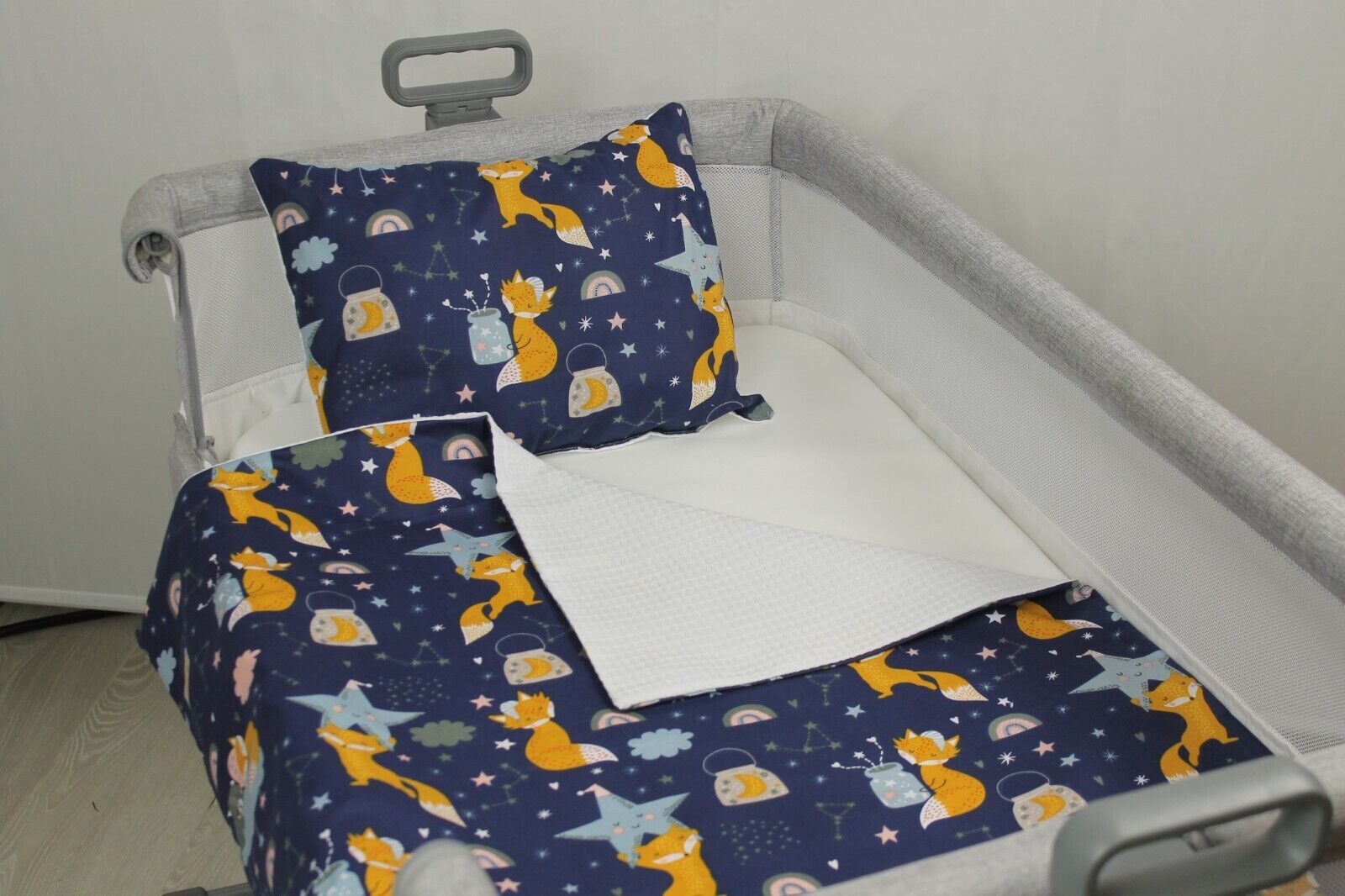 2pc baby blanket set for bedside crib pram cradle FOXES IN NIGHT waffle cotton