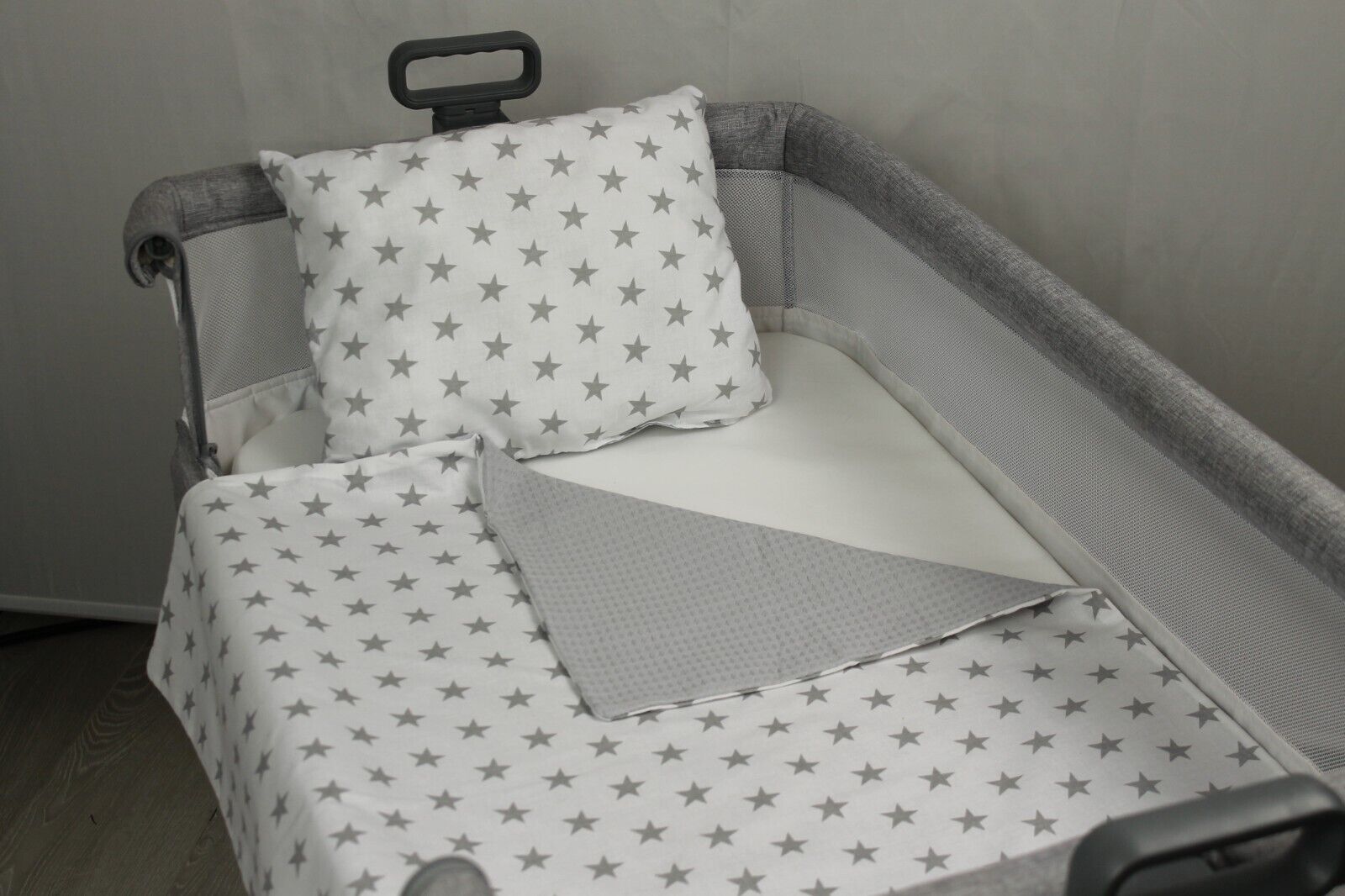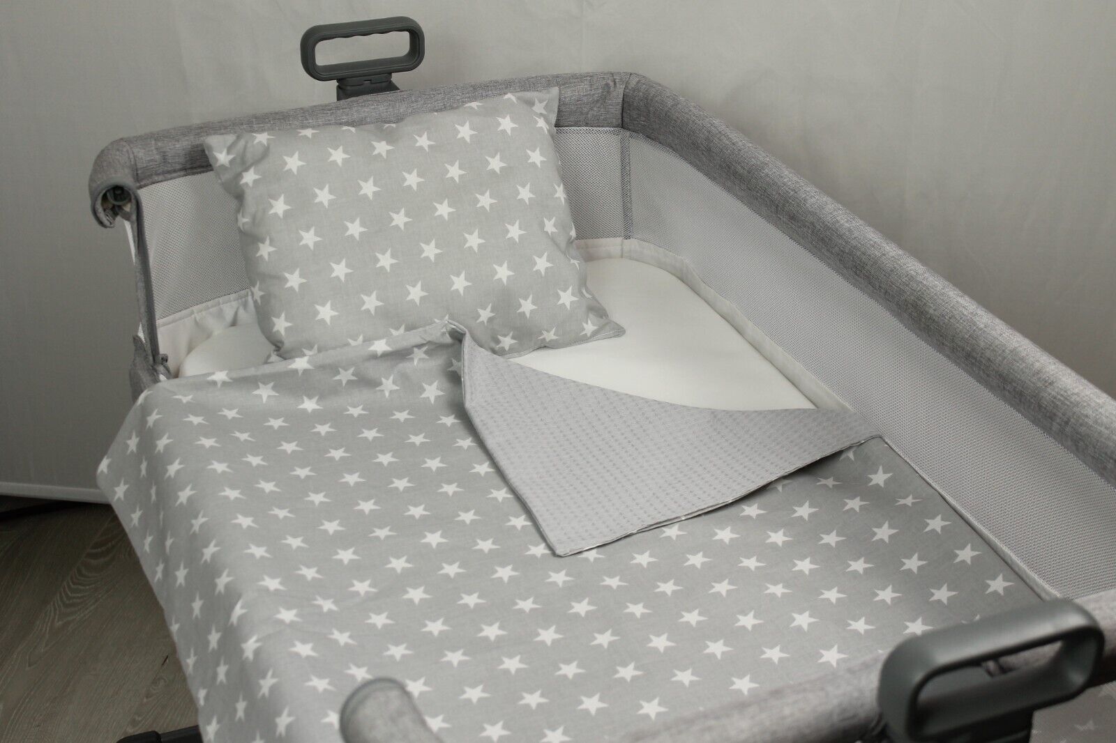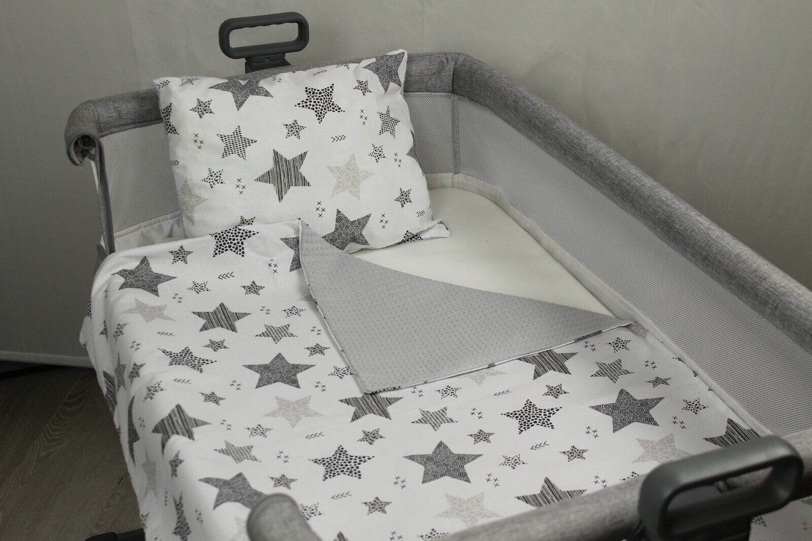 2pc baby blanket set for bedside crib pram cradle GREY STARS WHITE waffle cotton