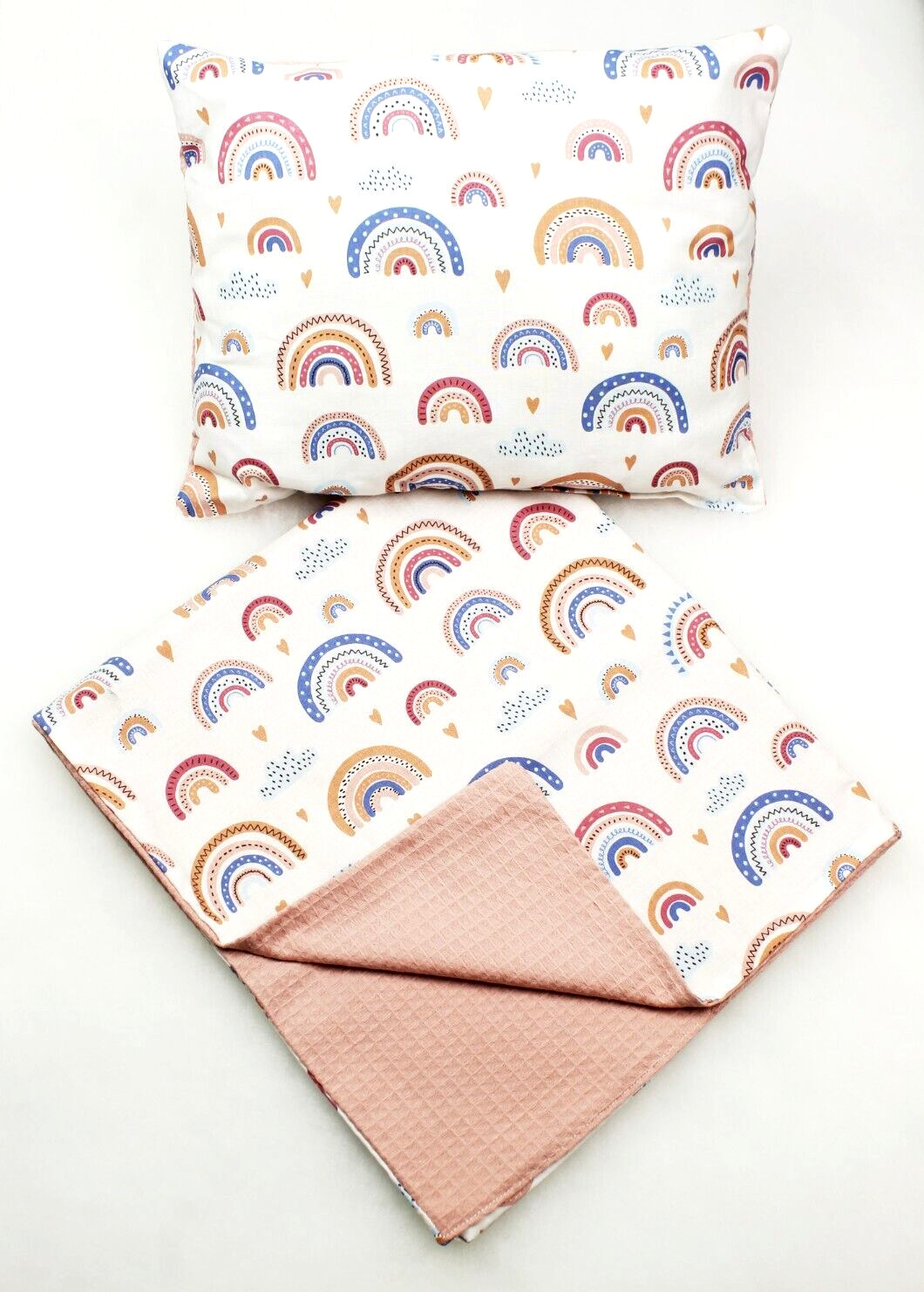 2pc baby blanket set for bedside crib pram cradle cotton BROWN BLUE RAINBOWS