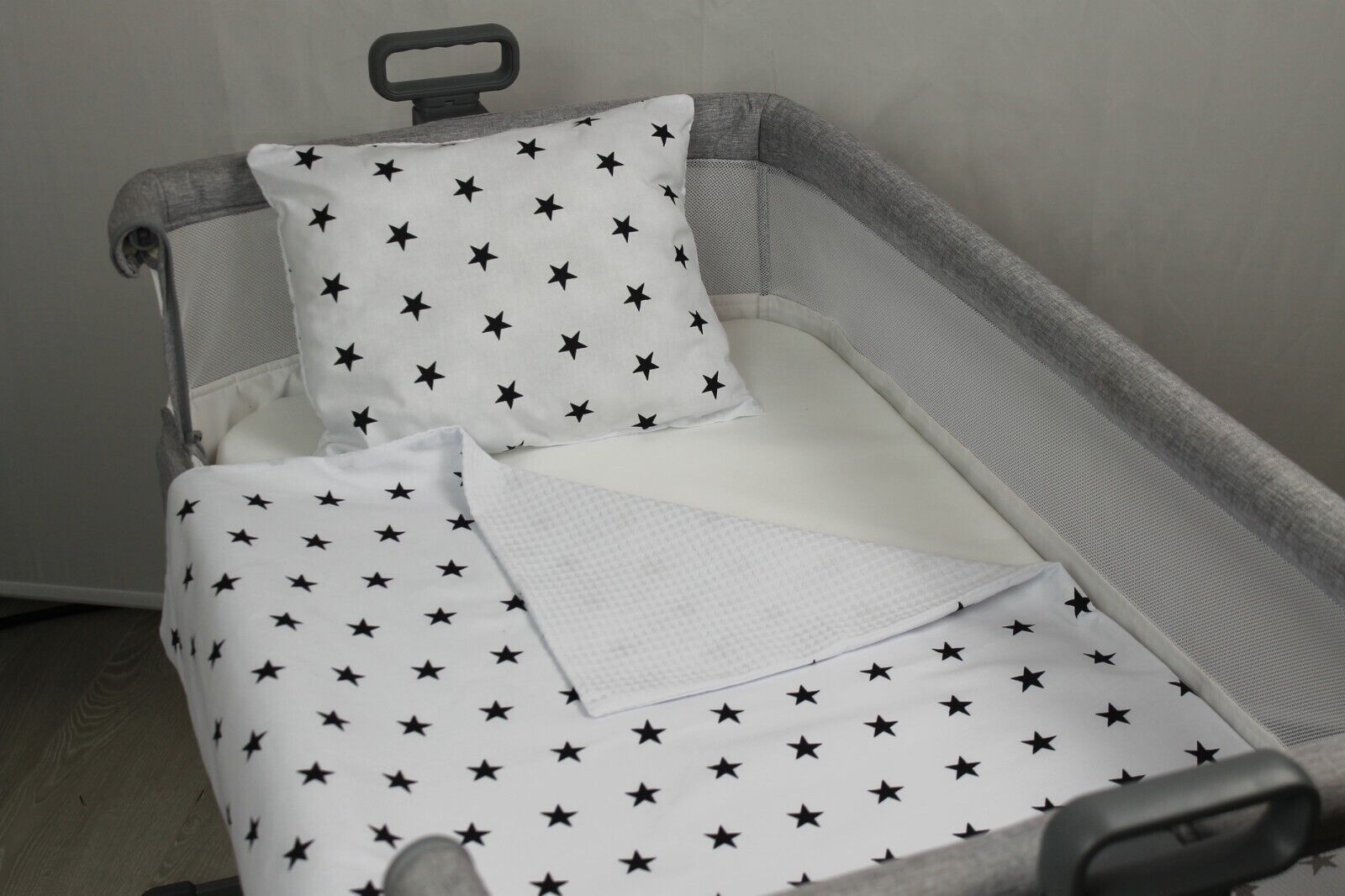 2pc baby blanket set for bedside crib pram cradle BLACK STARS waffle cotton