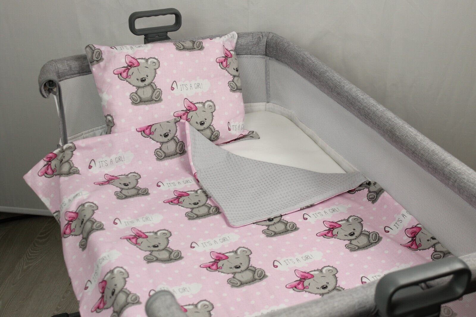 2pc baby blanket set for bedside crib pram cradle GIRL TEDDY PINK waffle cotton