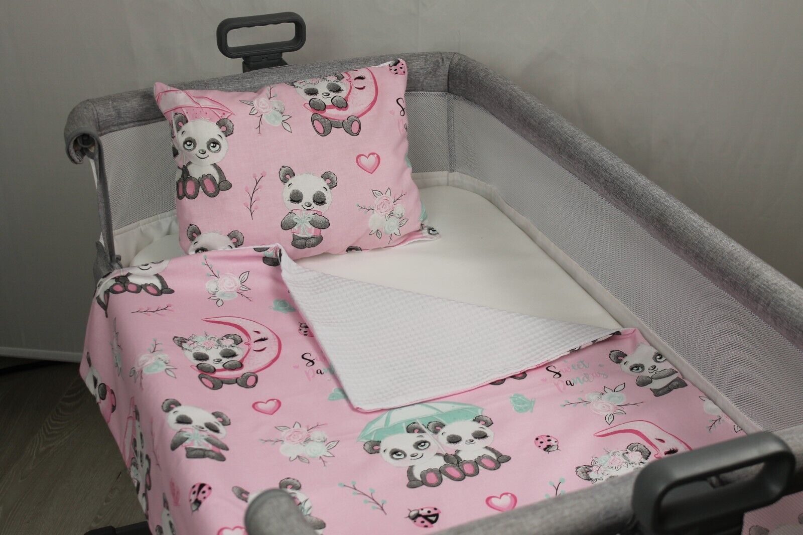 2pc baby blanket set for bedside crib pram cradle LOVE GIRL PANDAS waffle cotton