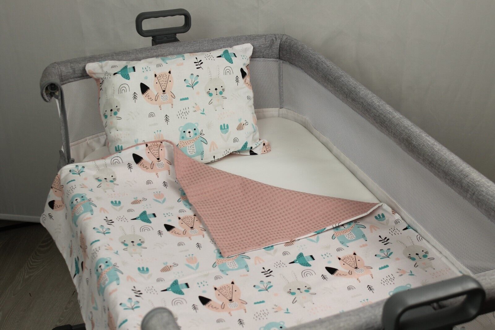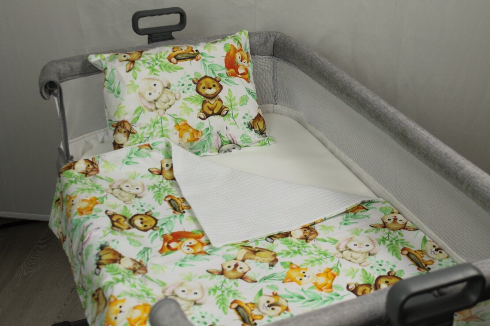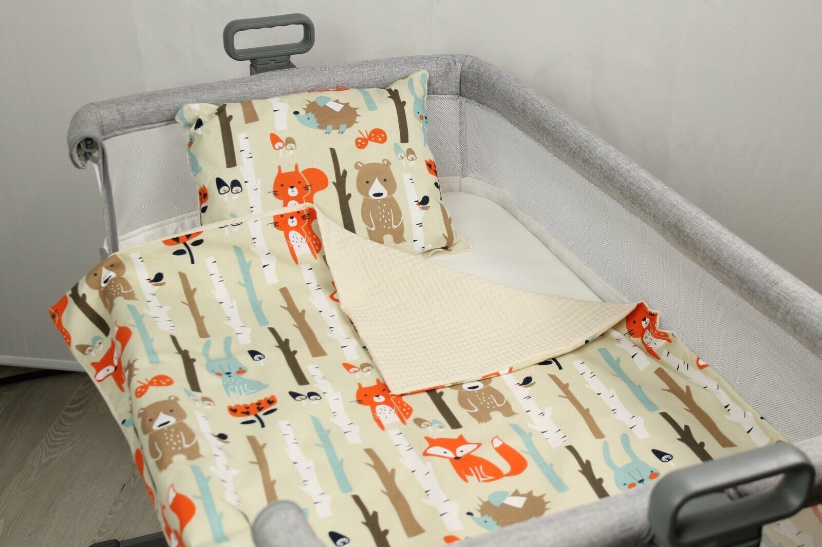 2pc baby blanket set for bedside crib pram cradle FOREST TEDDY FOX waffle cotton