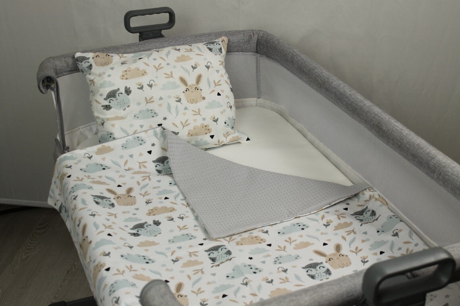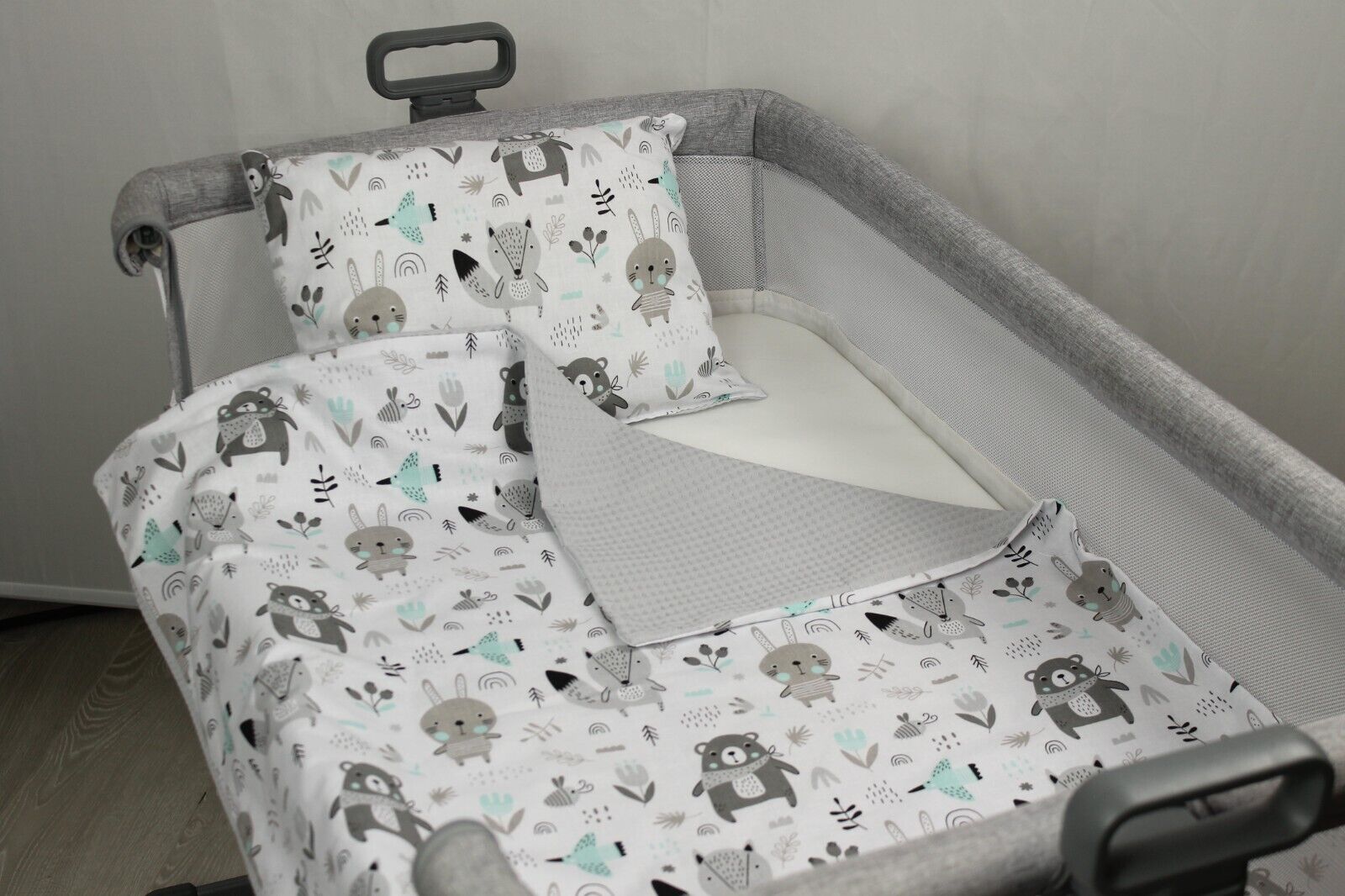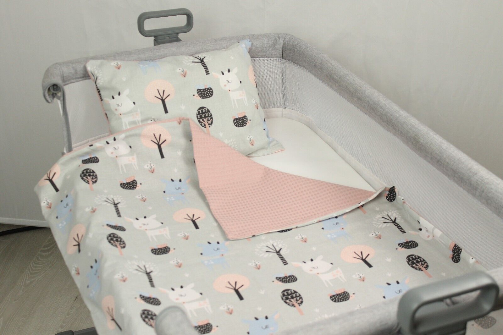 2pc baby blanket set for bedside crib pram cradle FOREST TEDDY FOX waffle cotton