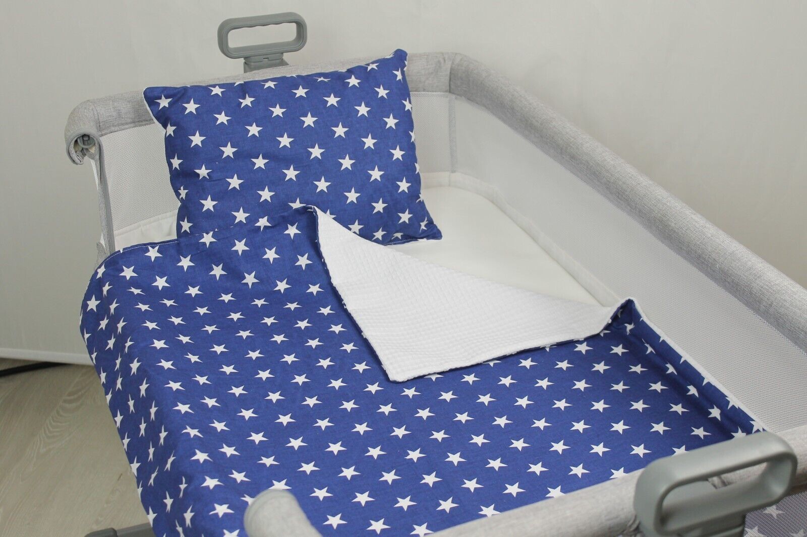 2pc baby blanket set for bedside crib pram cradle NAVY BLUE STARS waffle cotton