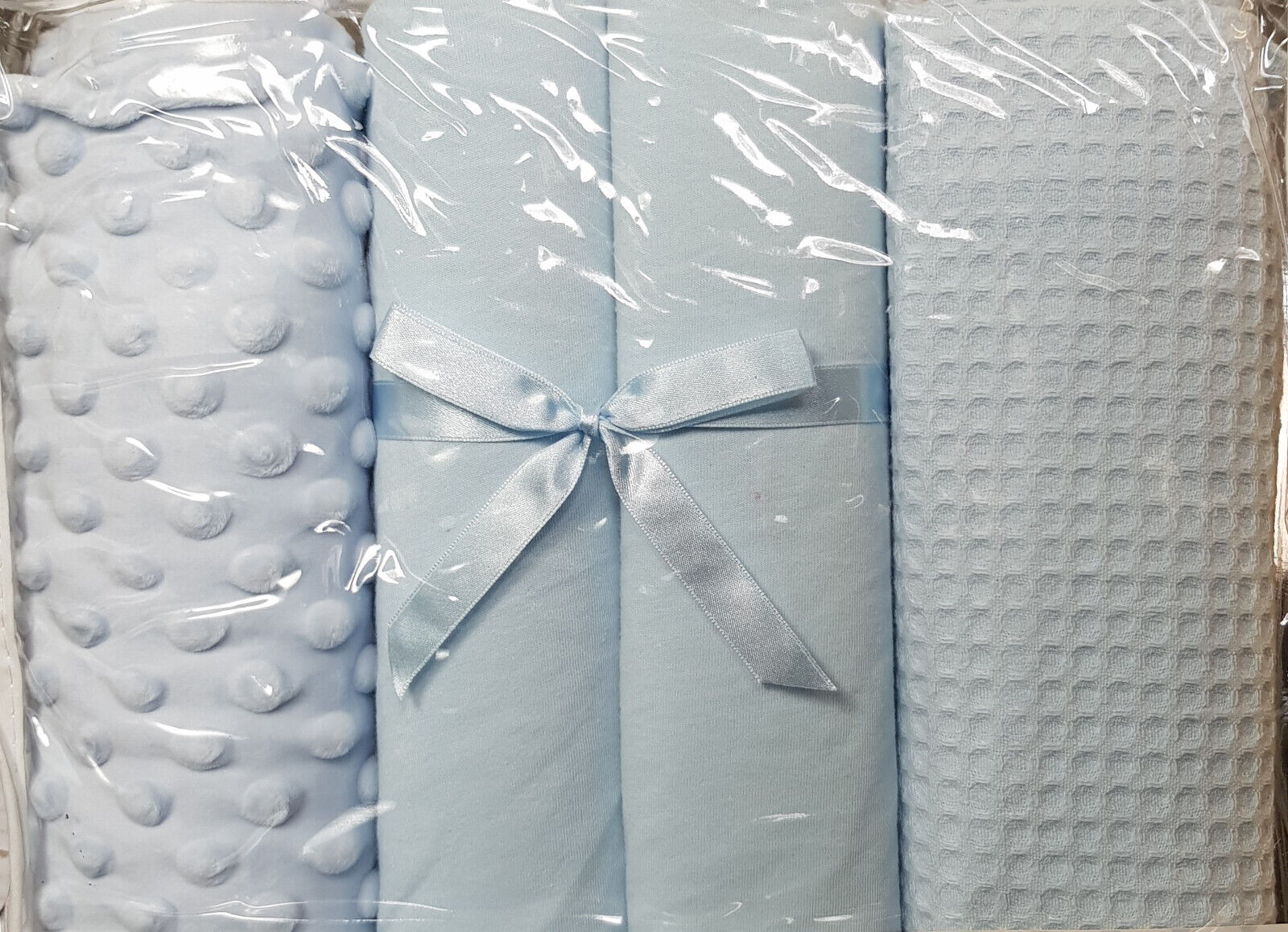 Set of Baby Boy Girl Soft Fleece Blanket Newborn Pram Crib Blue Heart+Grey Dot