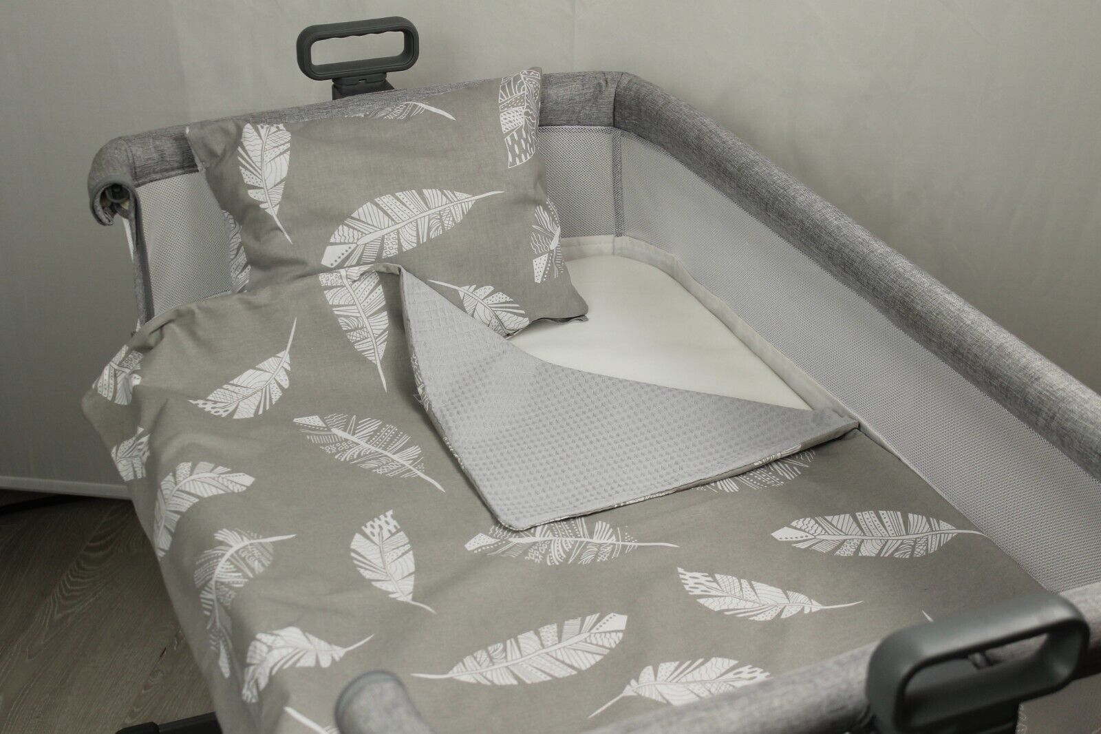 2pc baby blanket set for bedside crib pram cradle GREY FEATHERS waffle cotton