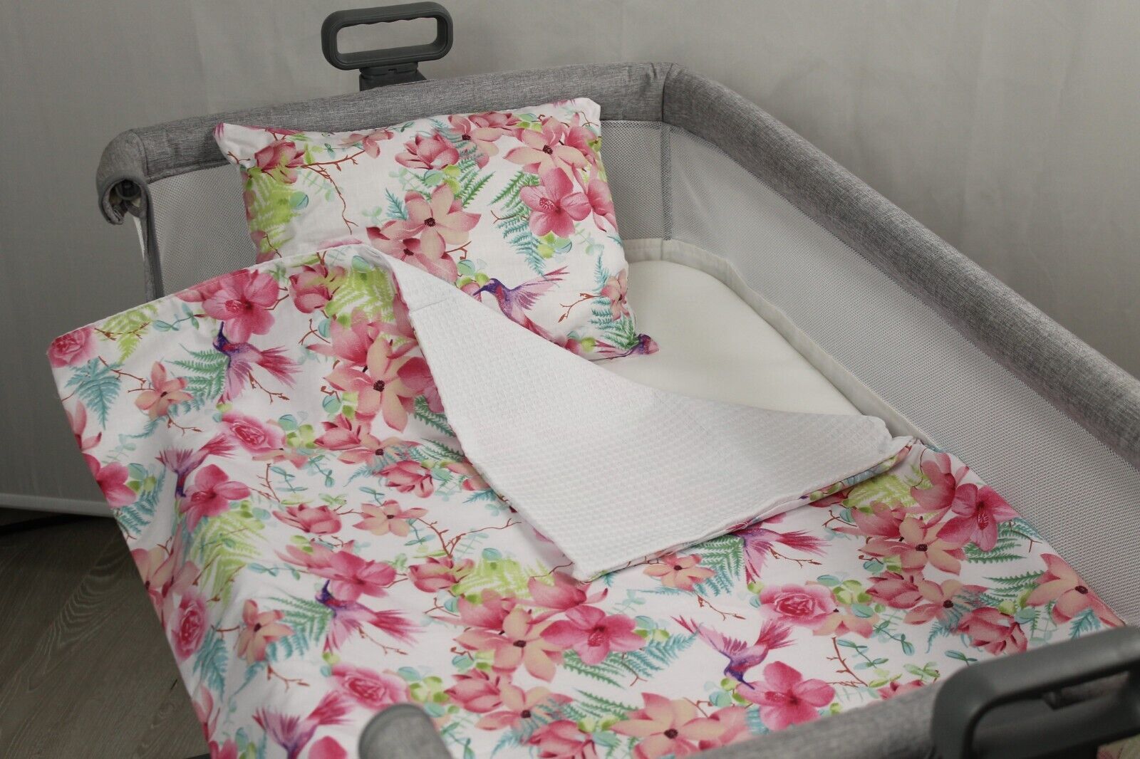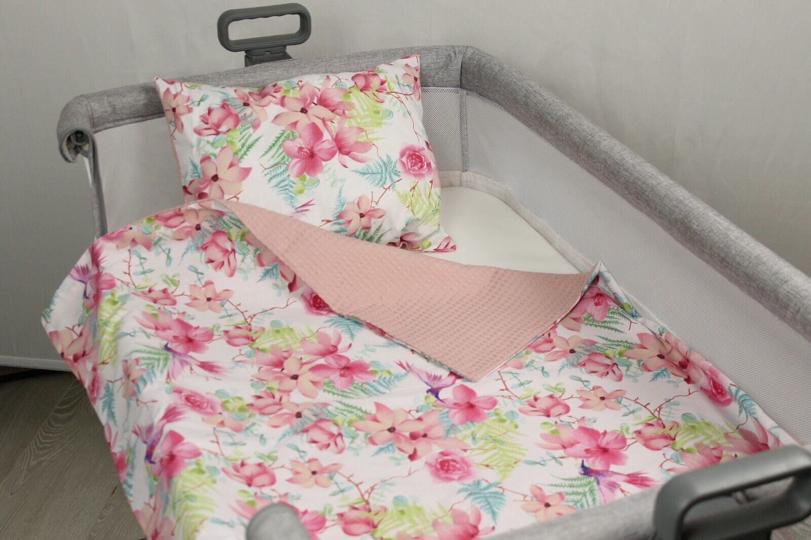 2pc baby blanket set for bedside crib pram cradle FLOWERS MAGNOLIA waffle cotton