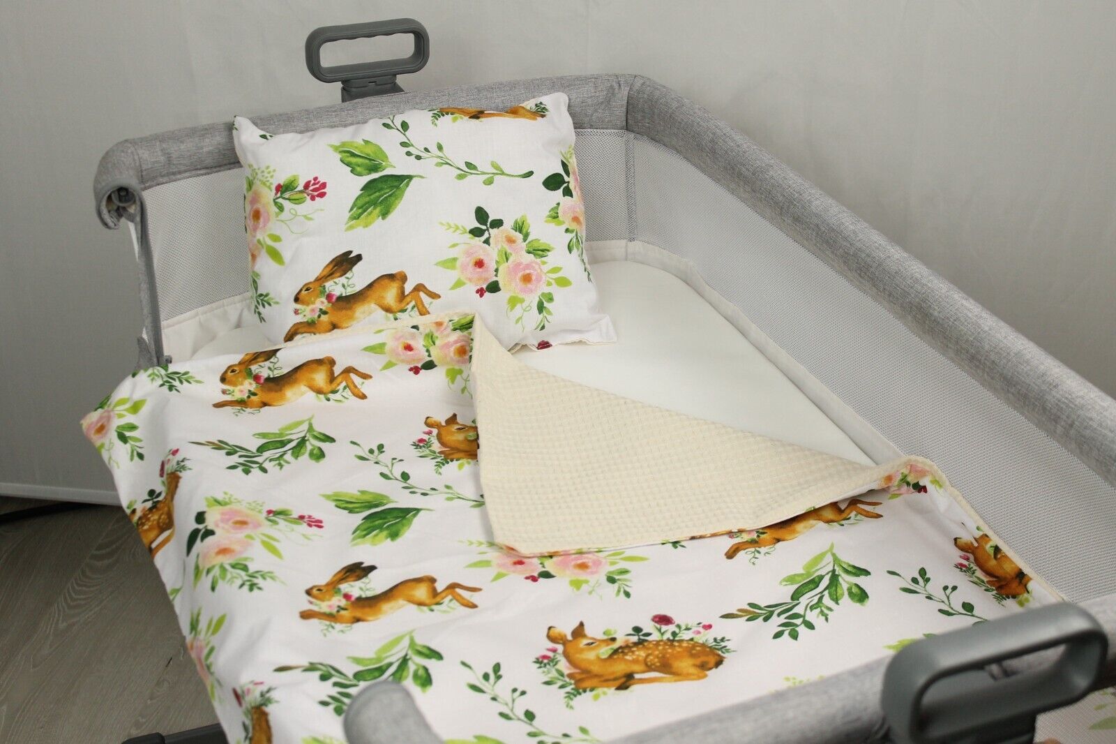 2pc baby blanket set for bedside crib pram cradle FOREST DEER waffle cotton