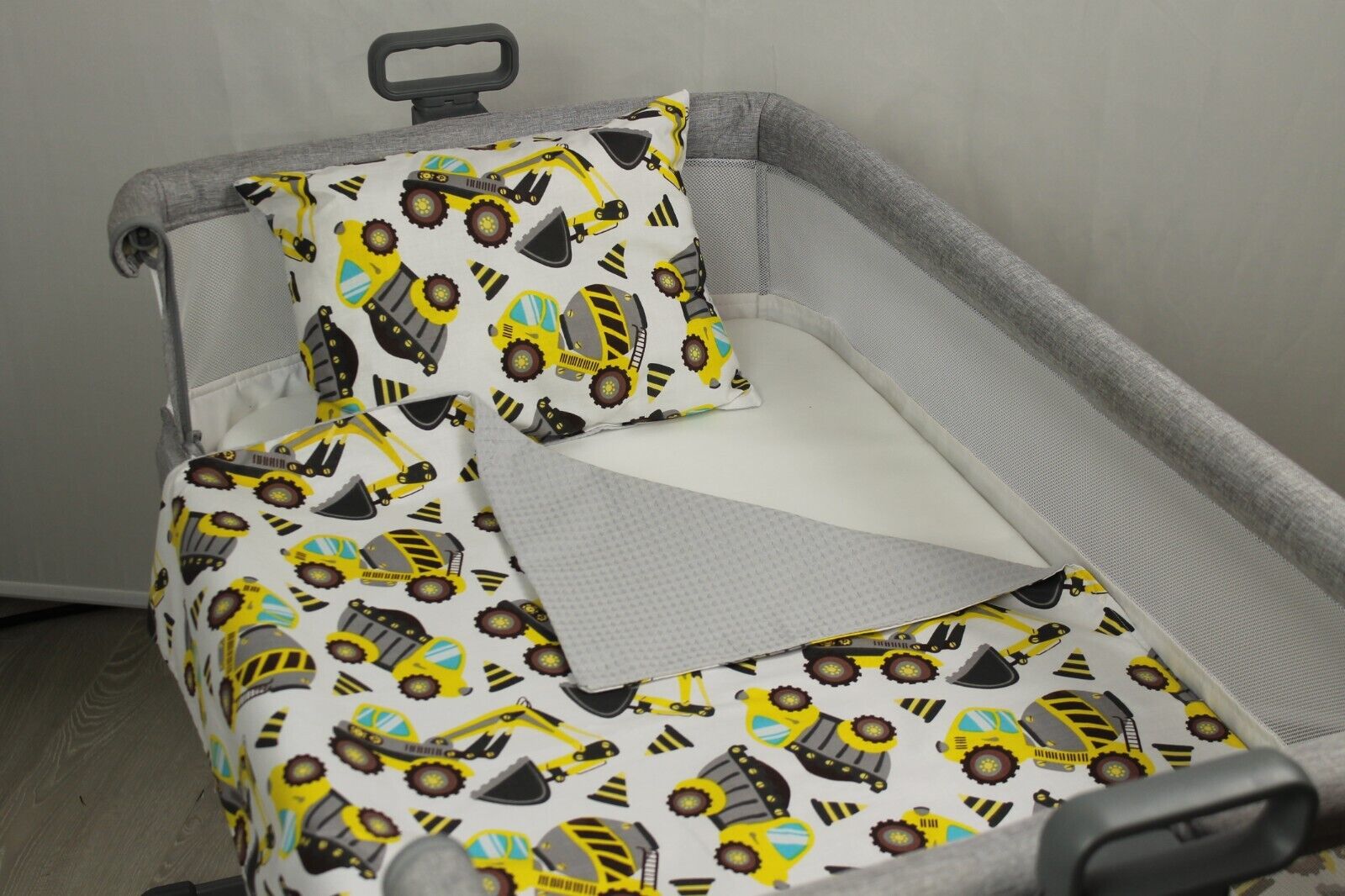 2pc baby blanket set for bedside crib pram cradle YELLOW CARS TOWN waffle cotton