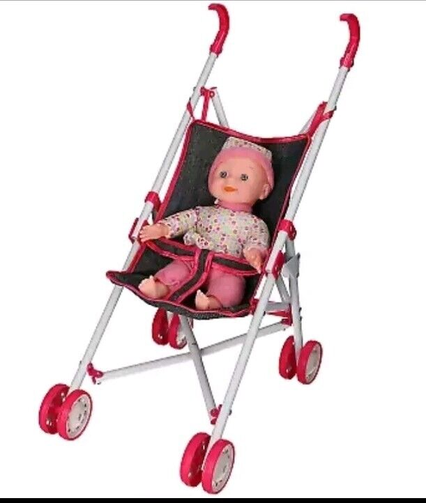 Baby Doll With Stroller Set Pink With Gray No Box New Free Post Doll & Pram