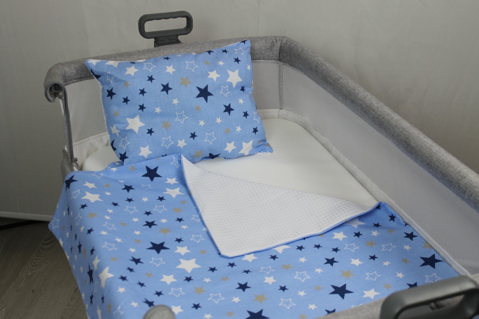 2pc baby blanket set for bedside crib pram cradle BLUE NAVY STARS waffle cotton