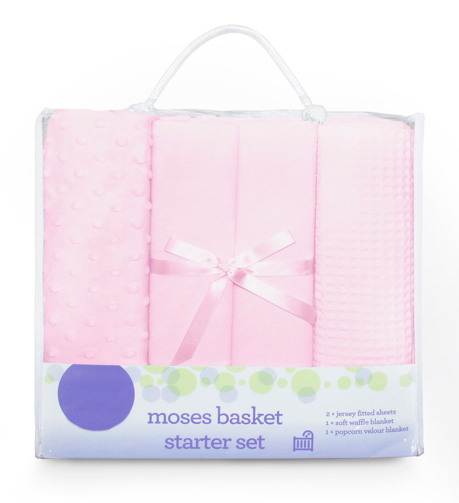 Baby Nursery Moses/Pram 4pc Starter Set Baby Pink