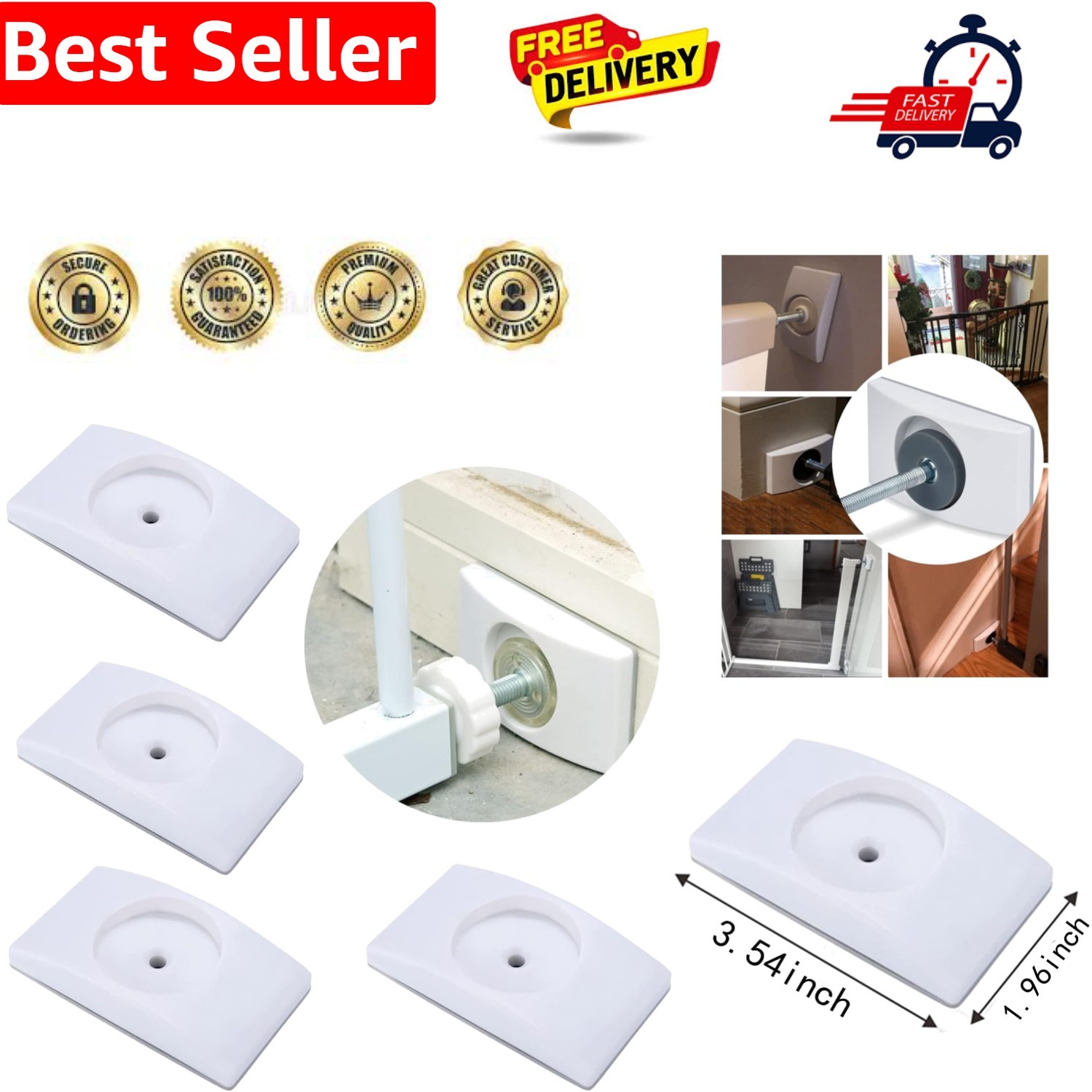 4 Pcs Safety Baby Gate Wall Protector Stair Extension Rectangular, White