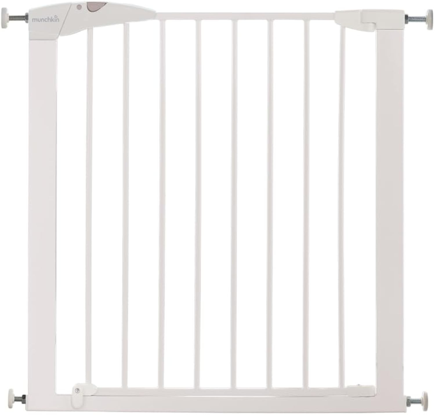 Munchkin Stair Gate Maxi Secure Toddler & Baby Gate 76-82cm extends up to 117cm with separately sold extensions | Pressure Fit Baby Safety & Dog Gate for Doorways | No-Screw Install Child Gate, White