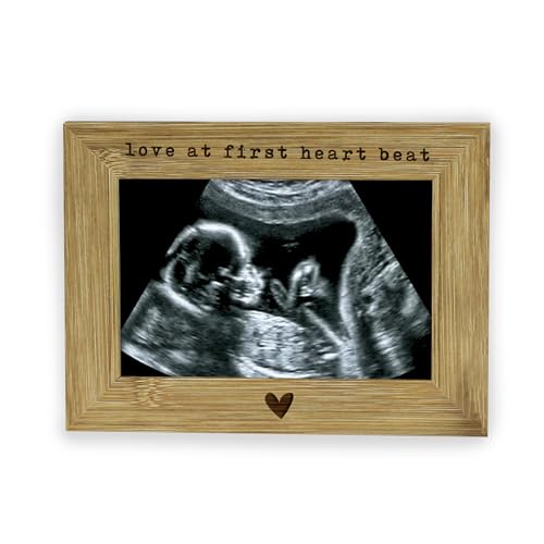 eBuyGB Baby Scan Photo Frame, Love At First Heart Beat, New Parent Gift, Pregnancy Announcement Picture Frame, 4" x 6", Beige