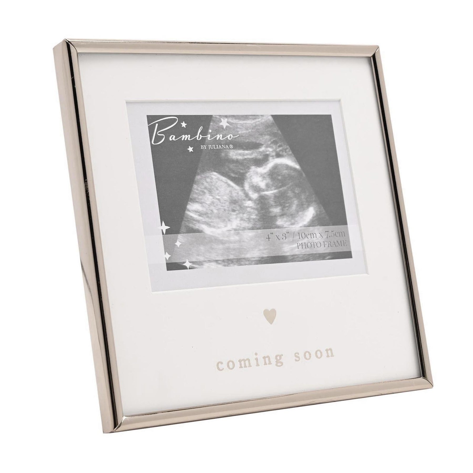 Baby Scan Photo Frame Silver Coming Soon with Heart 4'x3' Free Standing