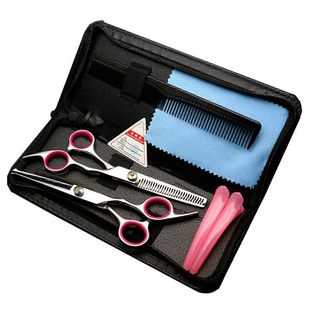 Professional Hair Cutting Thining Scissors Set Round Head Shears Baby Hairdressing Scissors Set for Baby Kids (Red)
