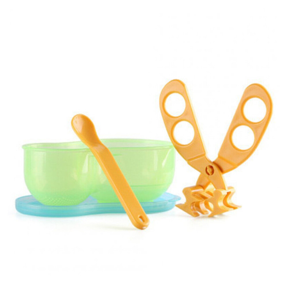 3Set Multi-function Portable PP Clip Scissors Baby Food Cut Supplement Scissors Green