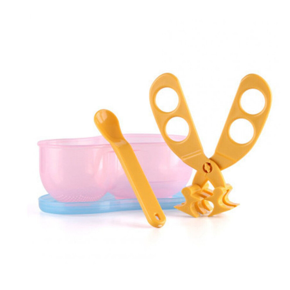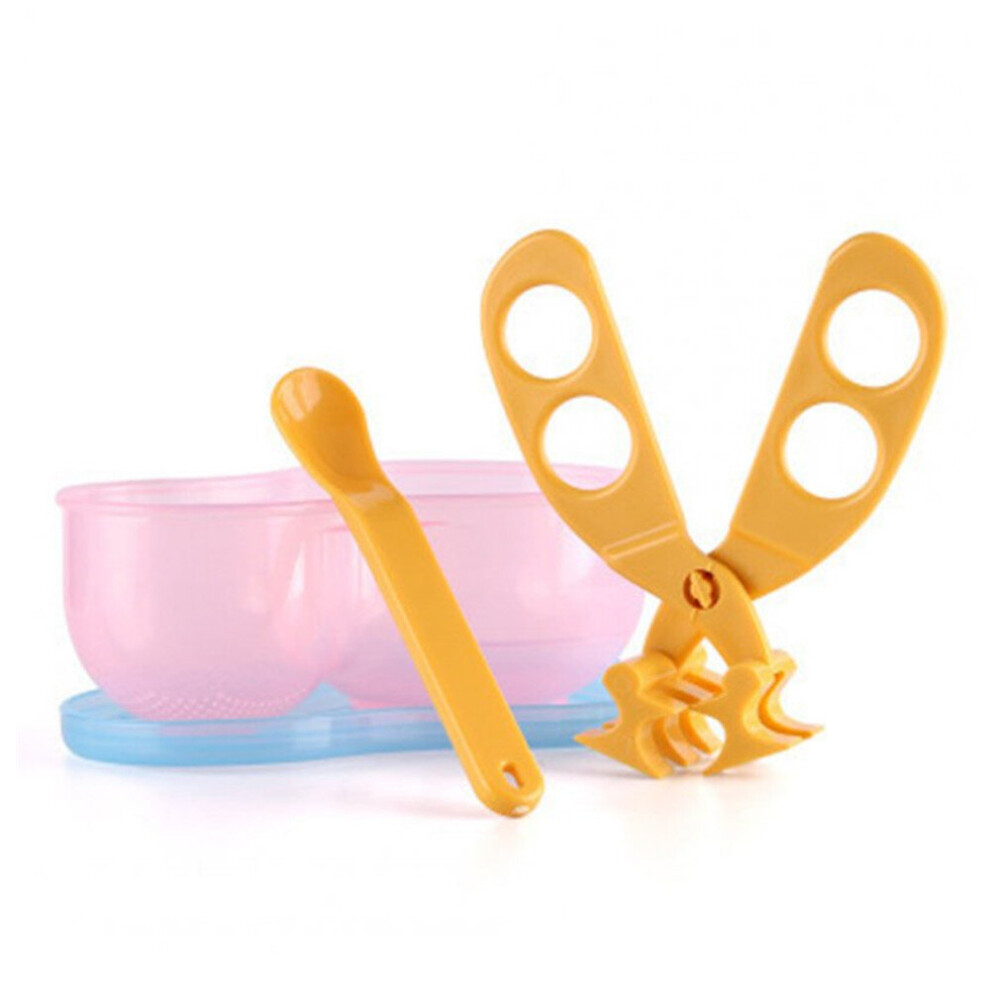 3Pcs Multi-function Portable PP Clip Scissors Baby Food Cut Supplement Scissors Pink