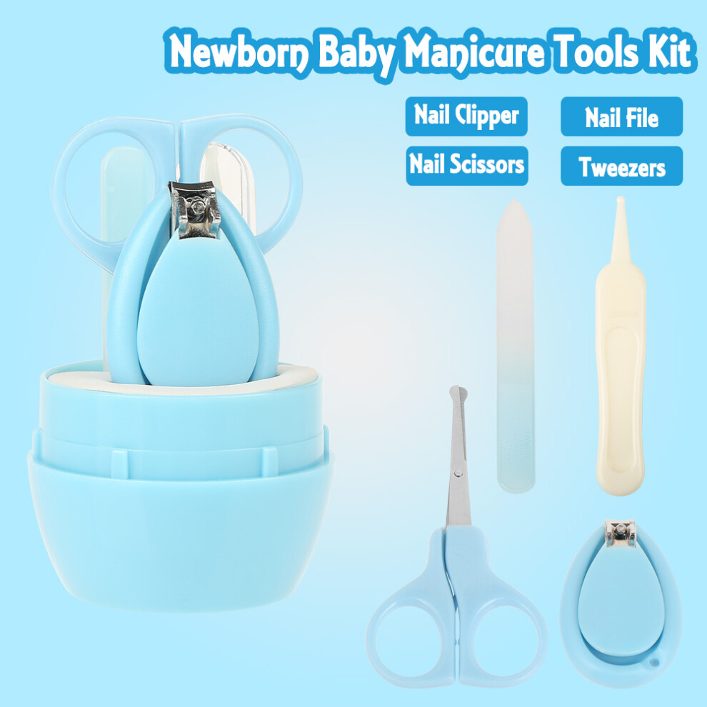 4pcs Convenient Daily Baby Nail Clipper Scissors Nails File Tweezers Manicure Care Kit Blue