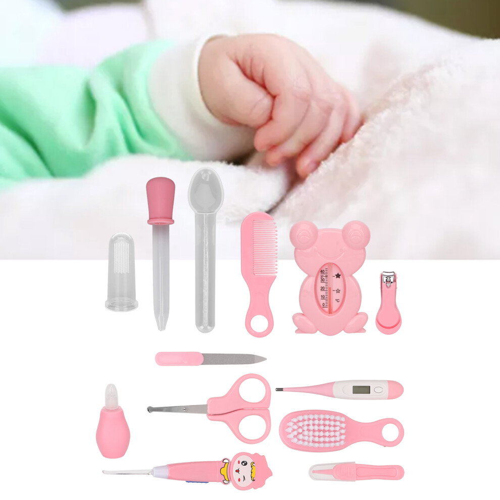 Baby Healthcare Kit Scissors Nail Clippers Tweezers Feeding Spoon Thermometer Comb Infants Grooming Kit Pink