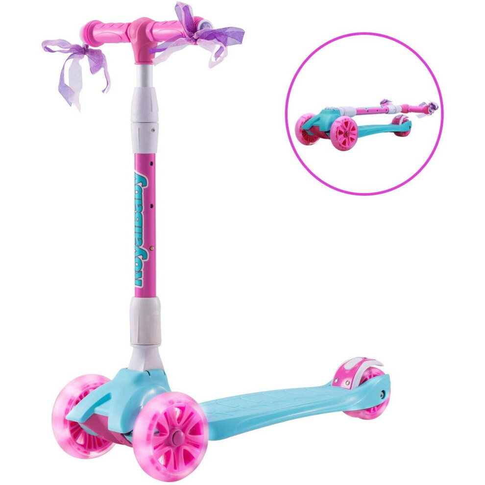 (Pink-blue) Royal Baby Foldable Children Scooter 3 wheels with spin flash light