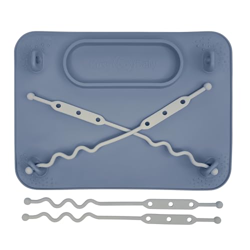 Busy Baby Silicone Placemat As Seen on Shark Tank with Suction Cups and Toy Tethers, Food Grade Silicone (8.5 x 11 in) with Travel Sleeve Dishwasher Safe (Pewter)