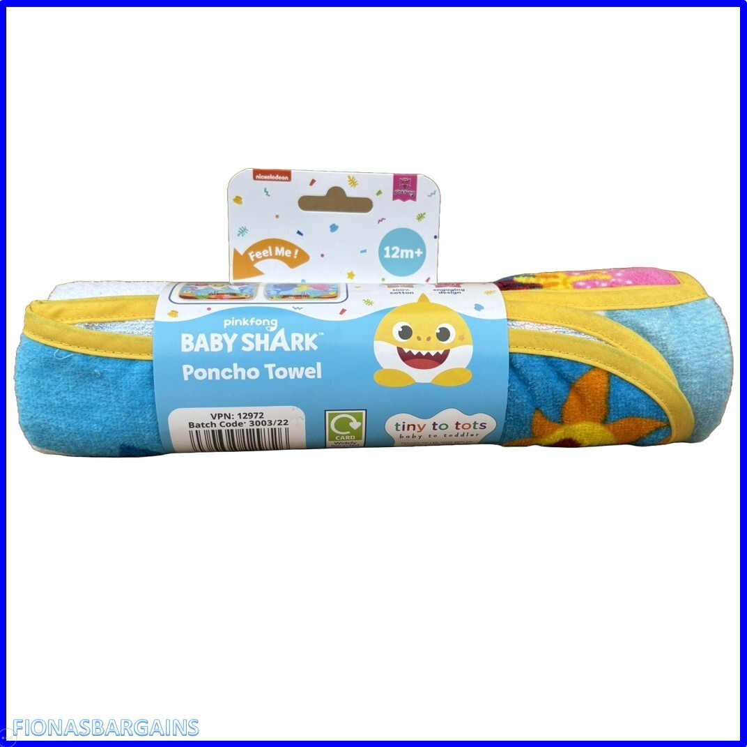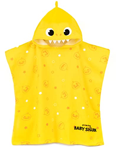 Baby Shark Towel Poncho Kids | Girls Boys Yellow Animated Shark | Childrens Song Bath Swimwear Beach Towel With 3D Face Fins Teeth