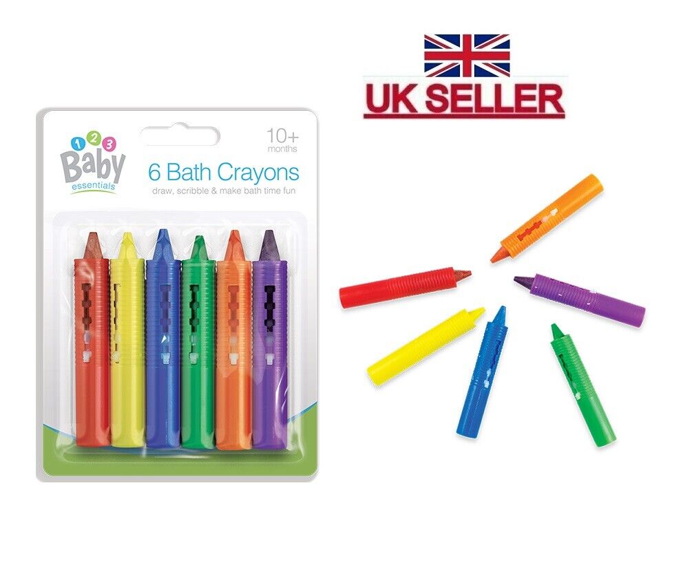 6 x BATH CRAYONS Washable Crayon Kids Baby Bath time Paints Drawing Pens Toy