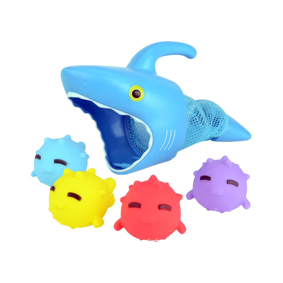 4pcs/set Baby Bath Toys Shark Shape Floating Toys Baby Silicone Bath Toys BPA-Free Childrens Learning Cognitive
