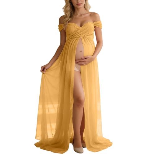 Yajun Lace Maternity Photography Dresses Maxi Gown Elegant Women Long Pregnancy Clothing For Baby Shower Plus Size Dress,White,M(Bust:97cm)
