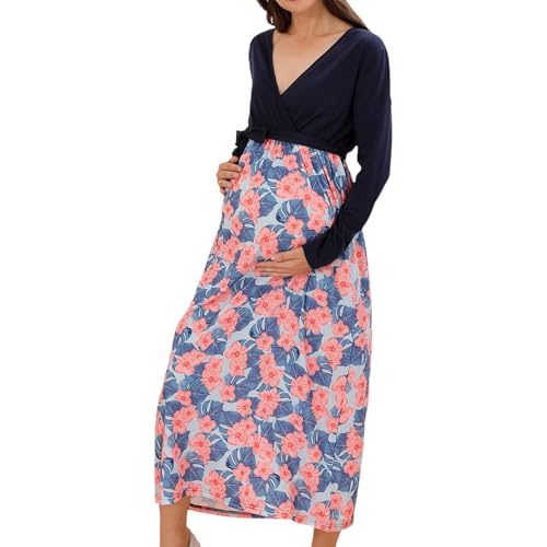 Maternity Maxi Dress, Baby Shower Dress, Casual Maternity Nursing Dress for Breastfeeding with Pockets Long Dress Uk Elegant Party Maternity Occasion Dresses Sleep Plus Size Maternity Clothing