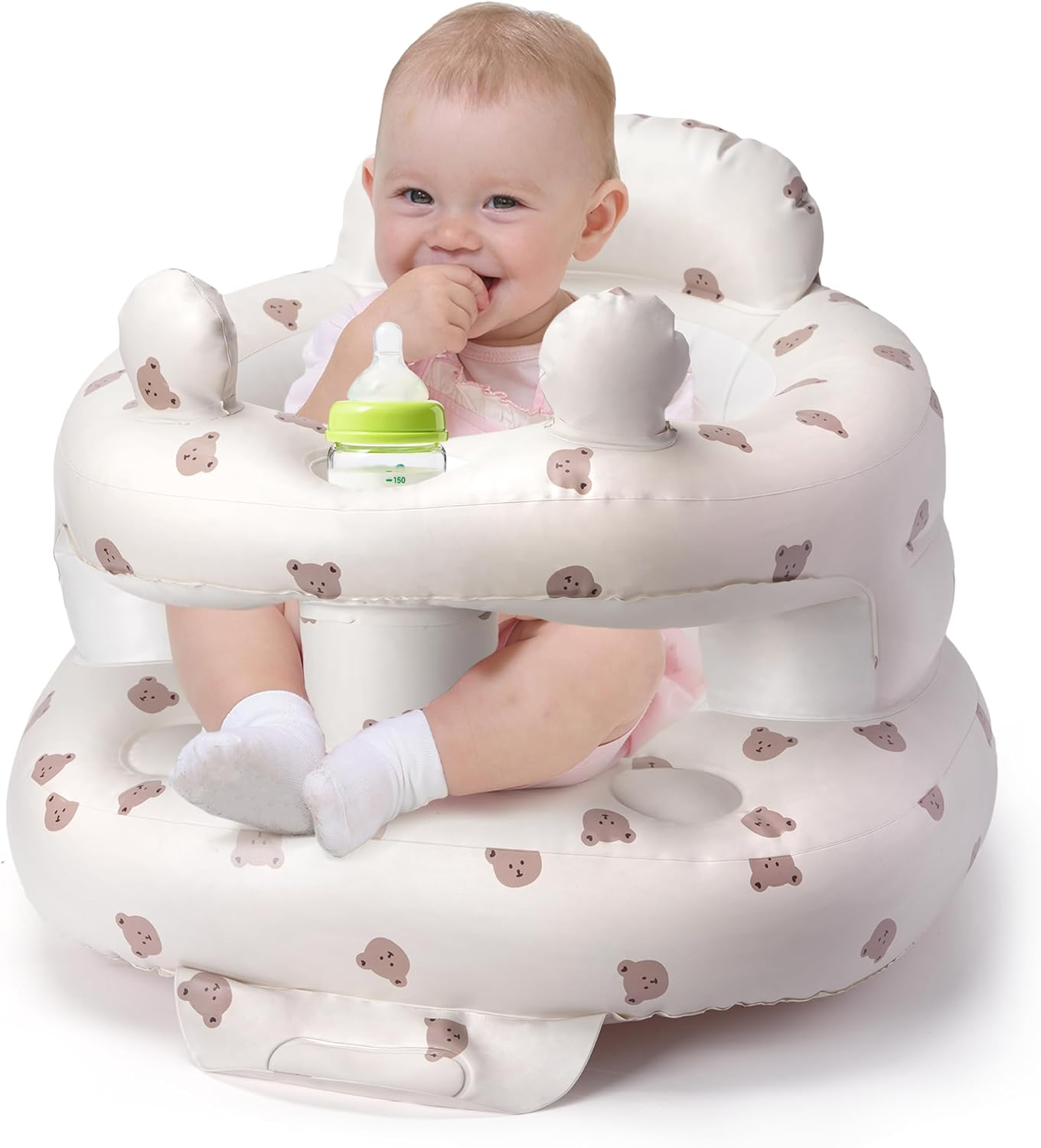 AirSwim Inflatable Baby Seat, Inflatable Baby Chair for Babies 3-36 Months, Portable Blow Up Chair with Built in Air Pump, Sit Me Up Floor Seat for Learning to Sit, Palying, Camping, Travel, Bear Head