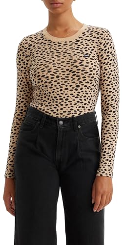 Levi's Women's Long-Sleeve Baby Tee T-Shirt, New Stella Leopard Almond Buff, XS