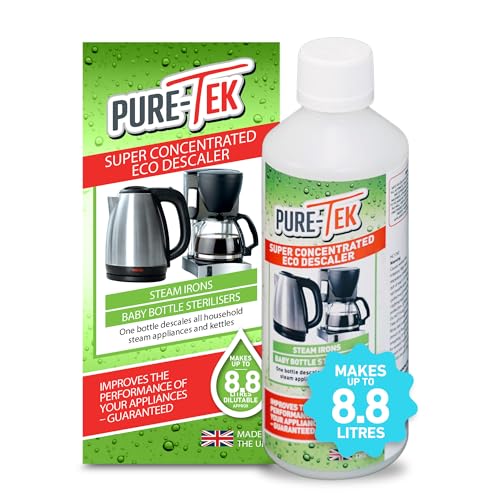 Pure-Tek Kettle Descaler Liquid, Coffee Machine Limescale Remover - Makes Up to 8.8L to Work with Nespresso Descaling, Steam Iron, Baby Steriliser & Coffee Machines, Citric Acid Descaler - 500ml