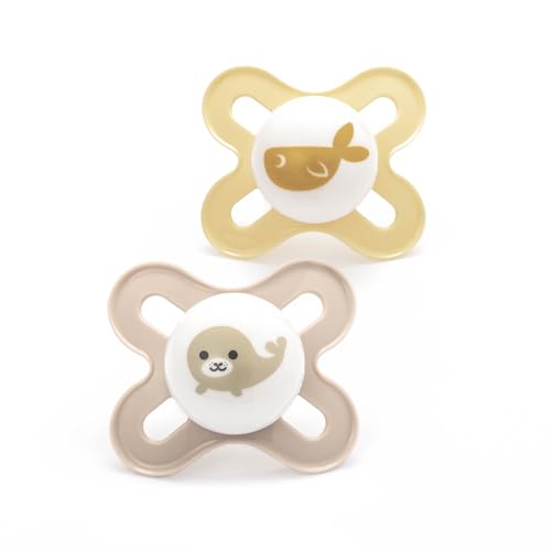 MAM Original Start Soothers | 0-2 Months | 2 Pack | Newborn Dummies | Comes in Dummy Steriliser Case | Sustainable Materials | Baby Accessories for Newborn | Cream (Various Designs)