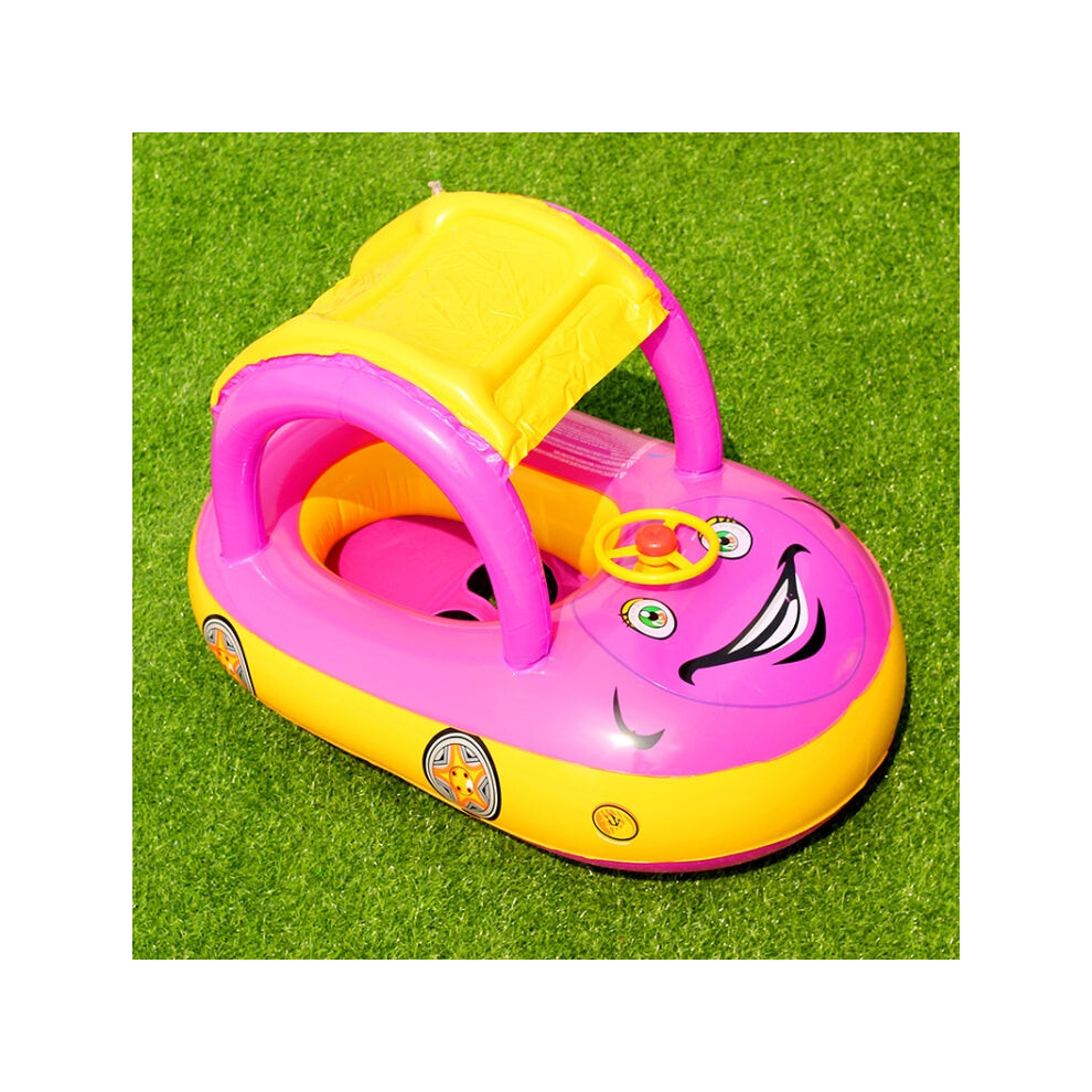 Sunshade and Sunscreen Baby Swimming Ring Car Boat Shape Inflatable Swimming Ring with Horn(Purple+Yellow)